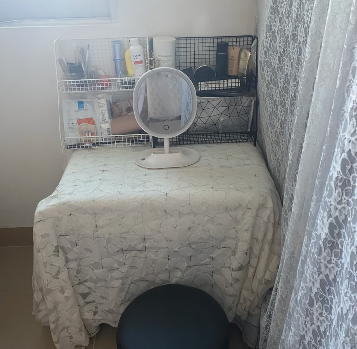 然后盖上一层好看的布料,这不就是一个平替版本的梳妆台吗!