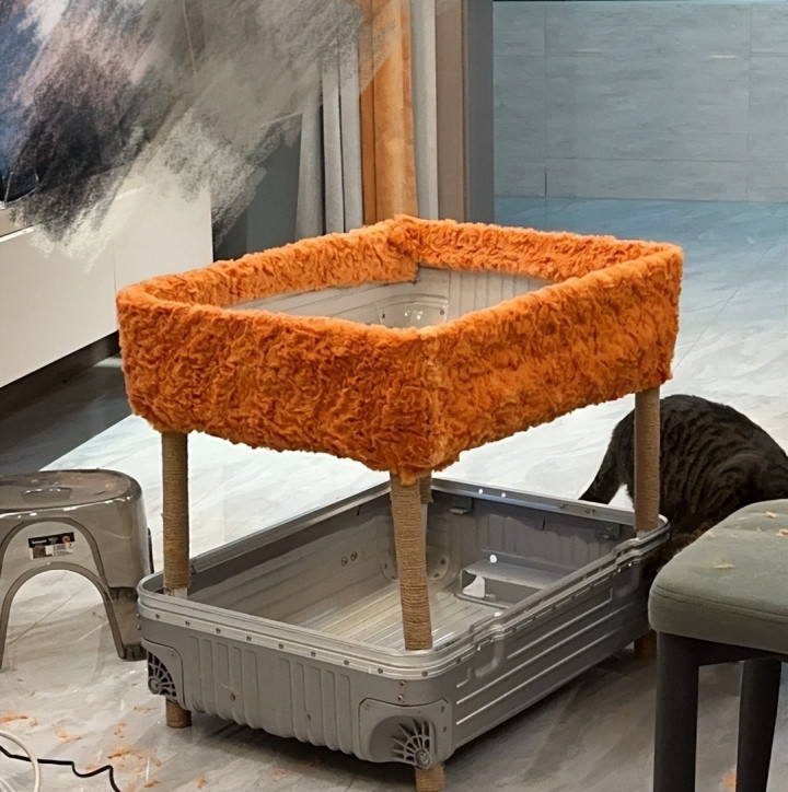 我看到网友们,把行李箱改造成了猫窝,没想到这么实用。
